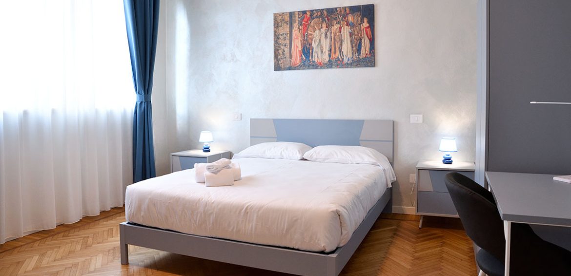 Moderno open space di 33 mq, perfetto per due persone. Ideale per coppie o viaggiatori singoli in cerca di comfort e posizione strategica.